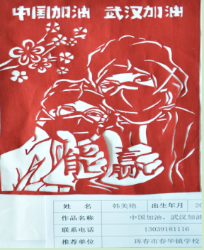 三等奖:韩美艳《中国加油,武汉必胜》珲春市春华镇学校