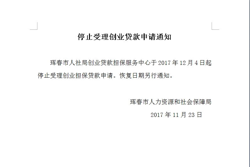 停止受理创业贷款申请通知