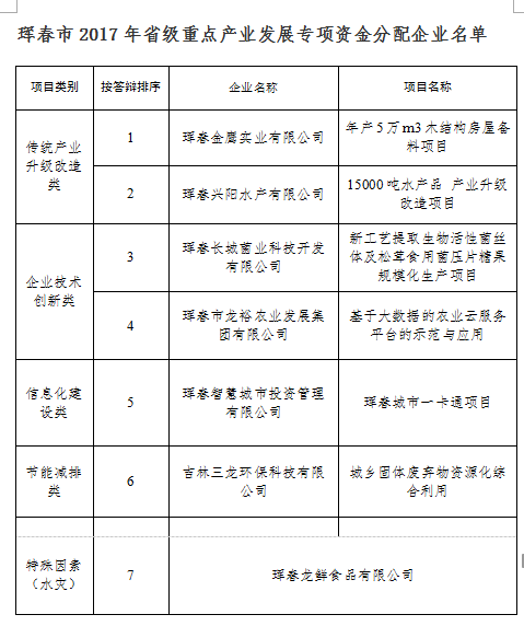 附件:珲春市2017年省级重点产业发展专项资金分配企业名单