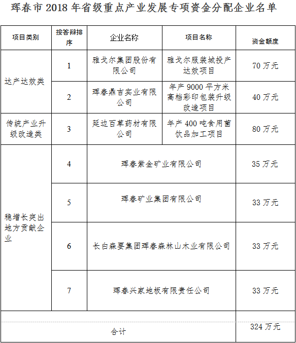 附件:珲春市2018年省级重点产业发展专项资金分配企业名单